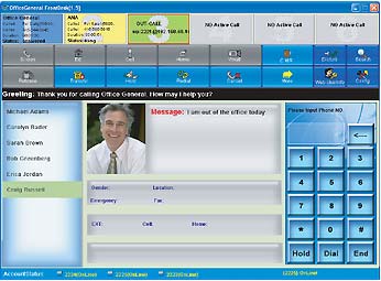 OWL的Softphone就好像一个能让你从电脑上打电话的电话机。它给移动办公来带来了解决方案。当你拨电话的时候对方会显示你办公室的电话,这意味着你可以是在世界上任何一个地方。最重要的是,如果你的公司使用同样的OWL电话服务,你和办公室间的通话是免费的。